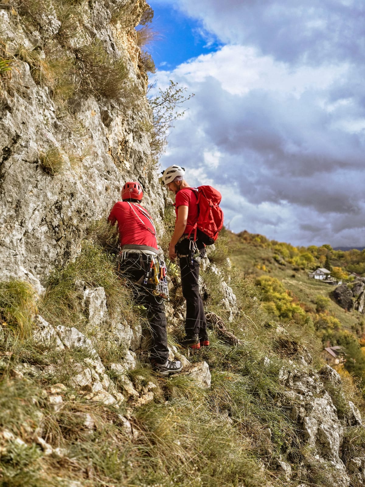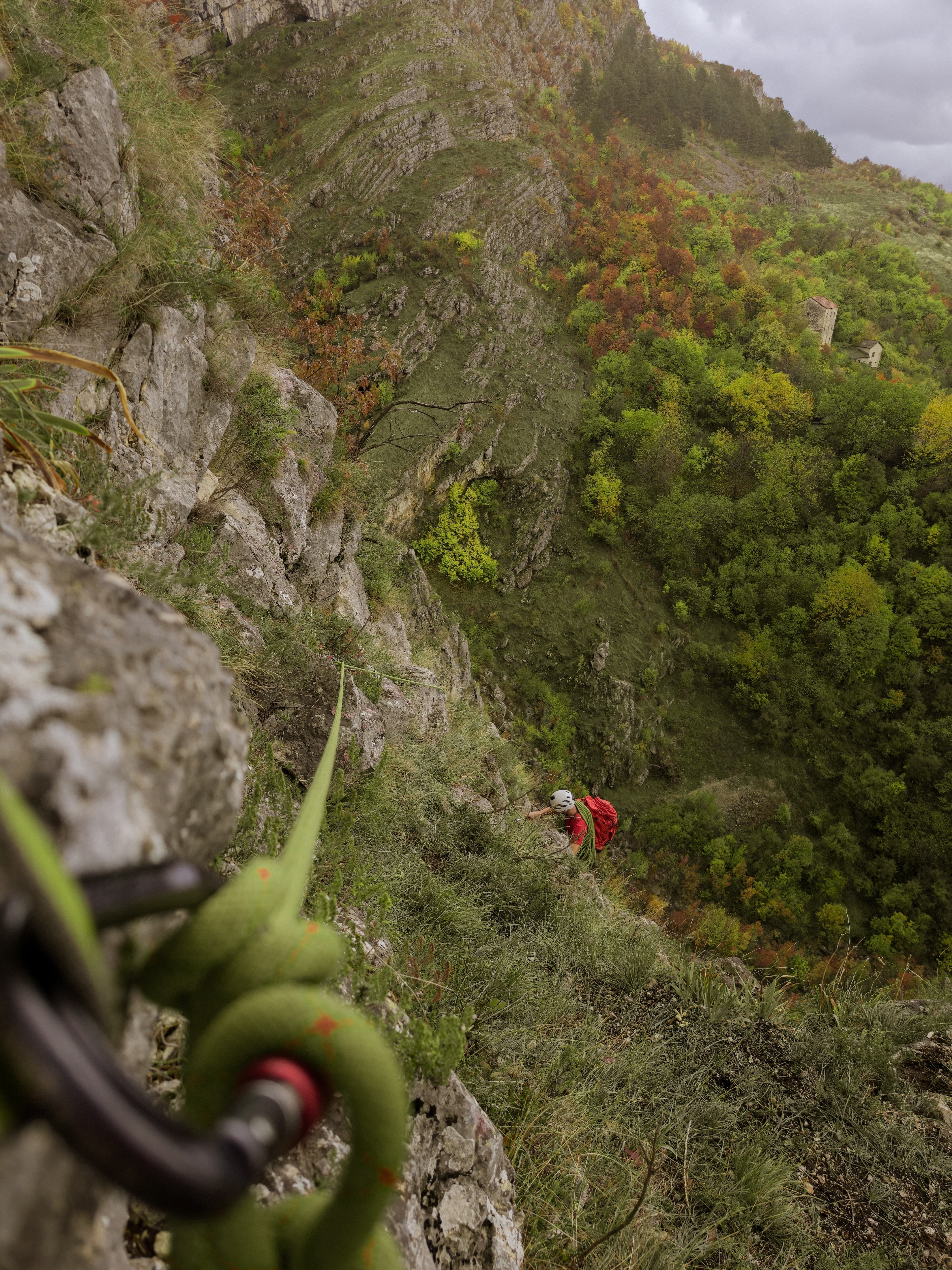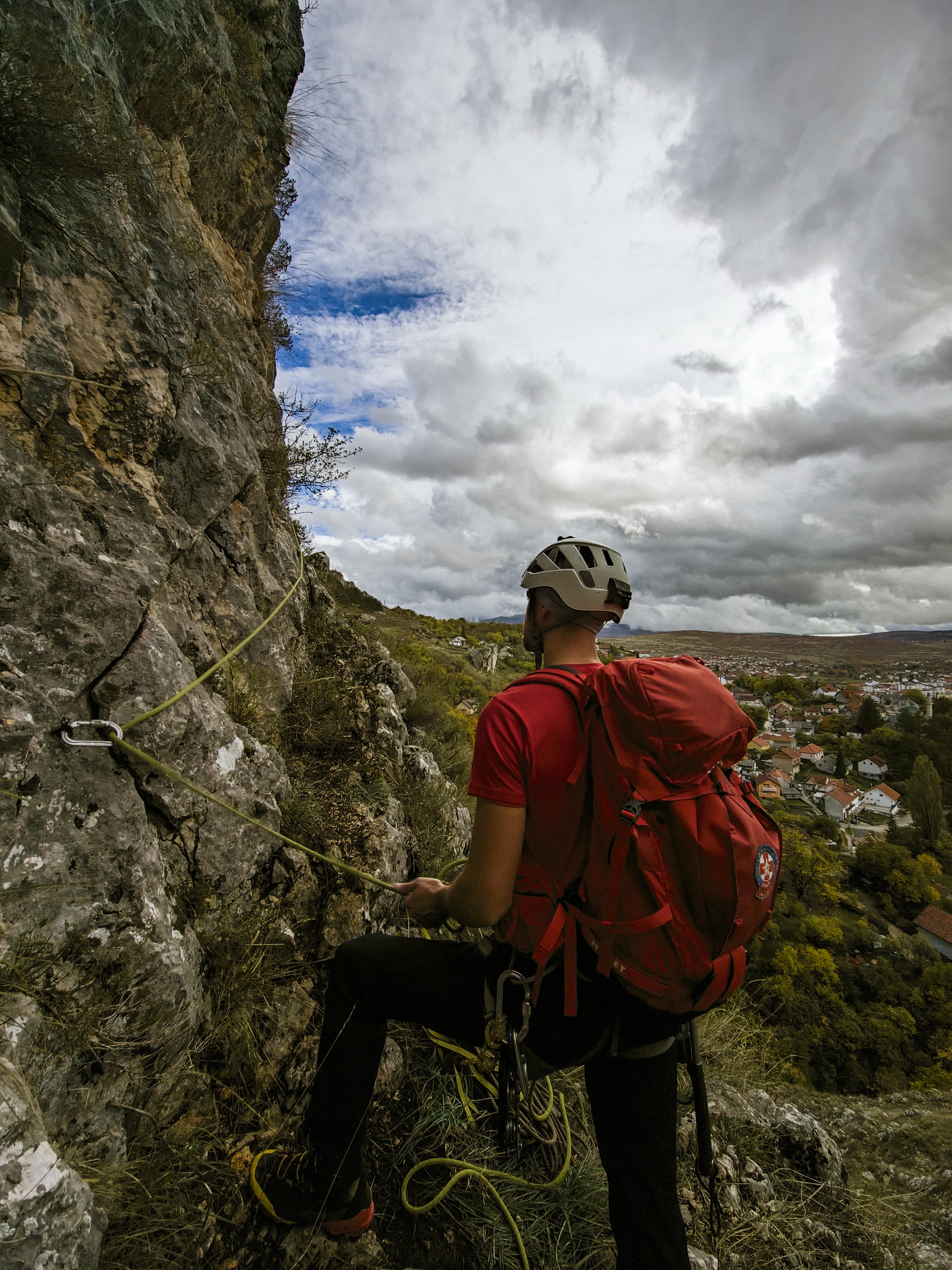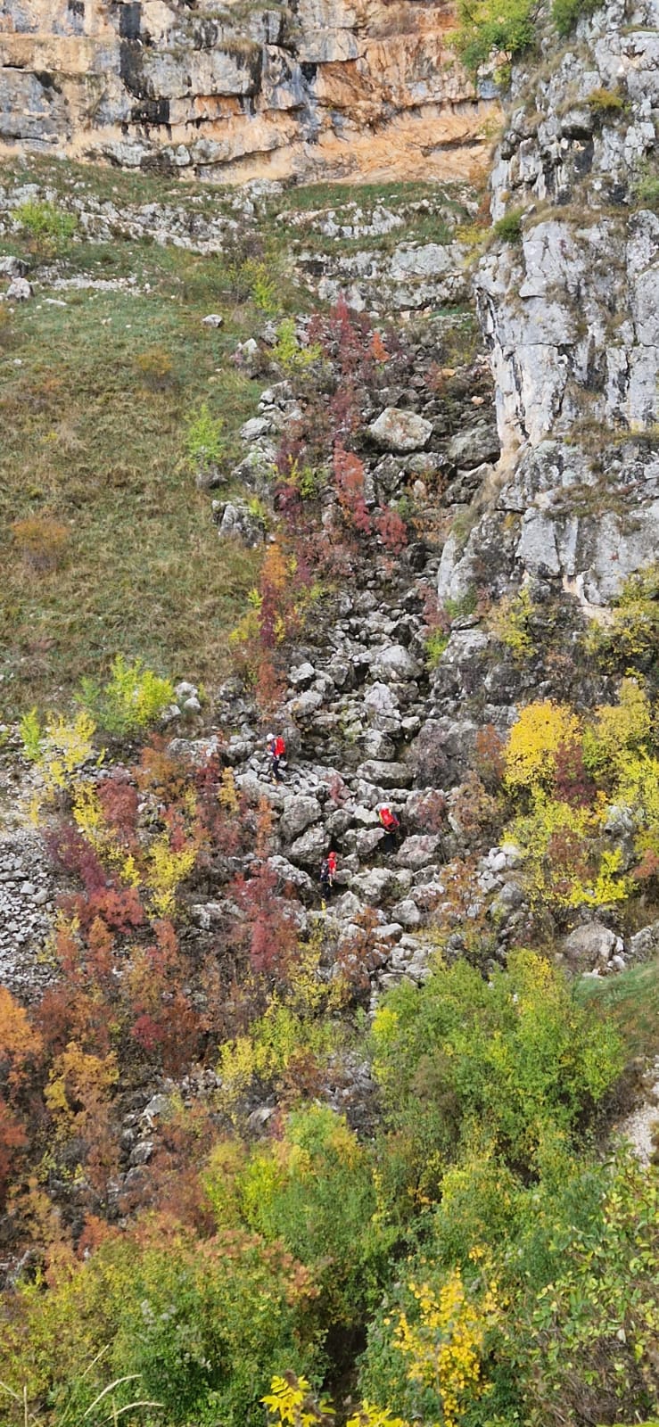 Unatoč kišnoj i tmurnoj nedjelji, šest spašavatelja naše stanice ubrzo se okupilo i izašlo na teren. Pas se nalazio na polici oko 40 metara visoko u stometarskoj stijeni. Odlučili smo se na paralelni uspon siparom, a zatim priječili stijenu kako bismo se spustili točno iznad njega.