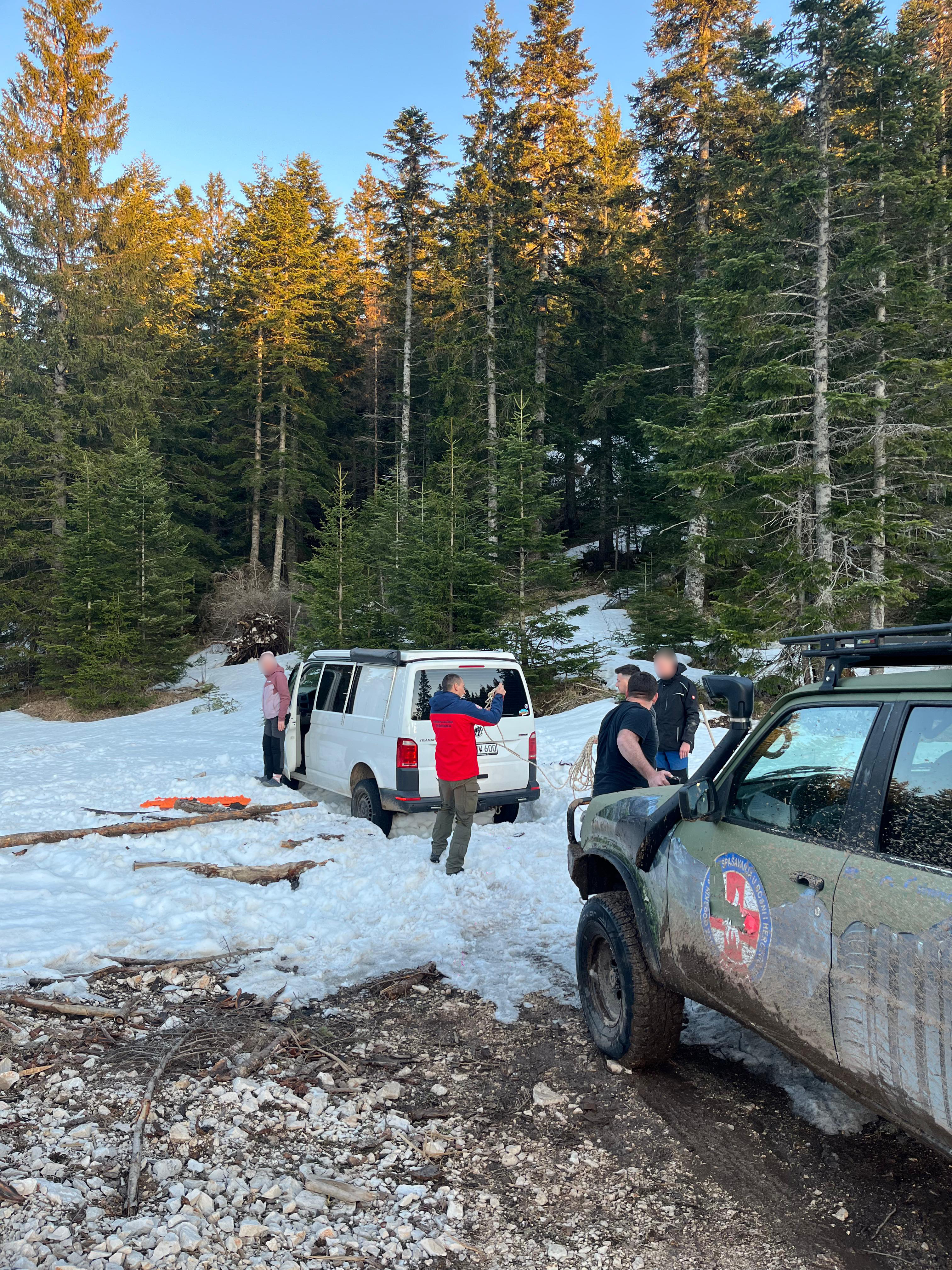 23. travnja, na dežurni telefon dobivamo poziv za pomoć njemačkim državljanima koji su kombi vozilom ostali zaglavljeni u snijegu na području sjeverne strane Cincara. Iako intervencije ovakvog tipa nisu u standardnom opisu naših djelatnosti, izlazimo na teren te pružamo pomoć osobama, jer nam dosadašnje iskustvo kaže kako najčešće jedna loša odluka vodi prema drugoj. Prevencije radi, bolje spriječiti nego liječiti.